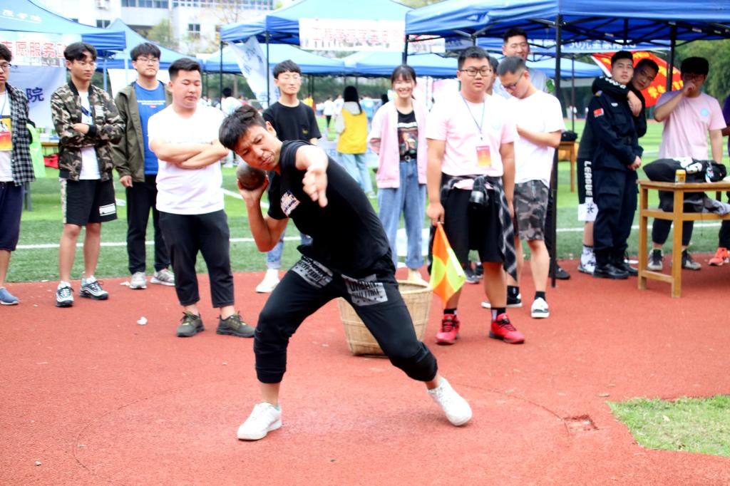 身子微倾,华丽转身,集全身力量于手臂与腰间而后奋力一抛。运动员手举着的是承载着希望与艰辛的铅球,掷出的是凝聚于球上的坚定信念。那如破竹之势般推出的闪亮的弧是他们放飞的希望。机械电子工程专业2016级的郭子愉获得男子组冠军。工程造价专业2017级的黄俊梅,小小的身躯里藏着巨大的能力,一举拿下女子组的第一名。她说:“虽然我没有实战经验,但是通过训练我也获得了很大进步,感谢学校能给我这个展现自己的机会。”