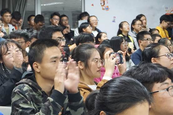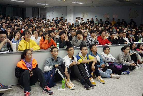 讲座还没开始,第四教学4518教室已经座无虚席,教室过道上、教室门口都挤满了学生,真是座无虚席、人山人海,充分展现了校区学子渴求知识、积极求学的良好风貌。