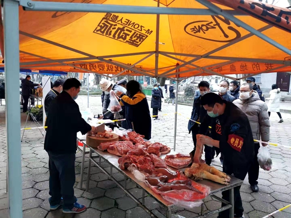 便民平价菜市运营初期,由于售卖点场地受限制,采购生活物资的住户不排队、钻围栏、插队突出,采购高峰期人流量大,导致购菜通道堵塞、人员扎堆,给售卖工作和疫情防控带来极大不便。为了保证购买有序,避免人群扎堆,后勤服务公司认真研究,制定切实有效的措施,对便民平价菜市运营初期的乱象进行整改。后勤服务公司员工在便民平价菜市外的广场在地面上,标注出间隔1米的排队位置,拉开猪肉摊位与蔬菜水果摊位的间距,加固增密围栏,设置进出口通道,结账点分开,组织党员义工维持秩序,控制人员进入数量,有力地维持了购买秩序,工作效率也明显提高,购买人员和售卖员工的身体健康也得到了保障。公司还广泛搜集住户意见,把原计划只在上午售卖的时间改为上、下午,便于采购生活物资的住户可以错峰购买新鲜蔬菜和水果。同时,便民平价菜市的蔬菜品种由原来的每天10多个增加到近40个品种,并严格把关蔬菜和肉食品的质量,保持价格与外面菜市场价格基本一致。