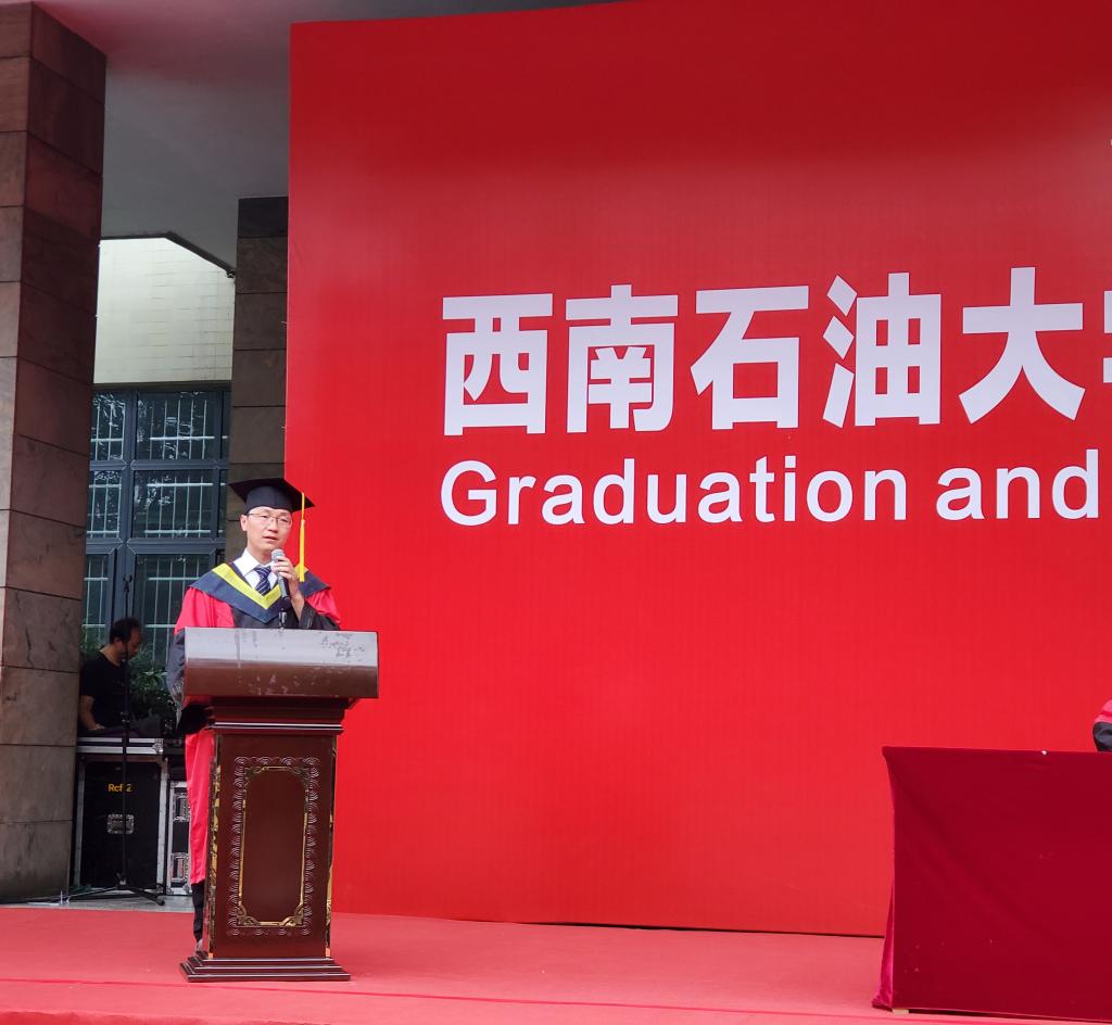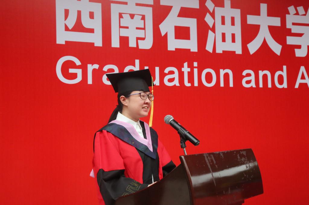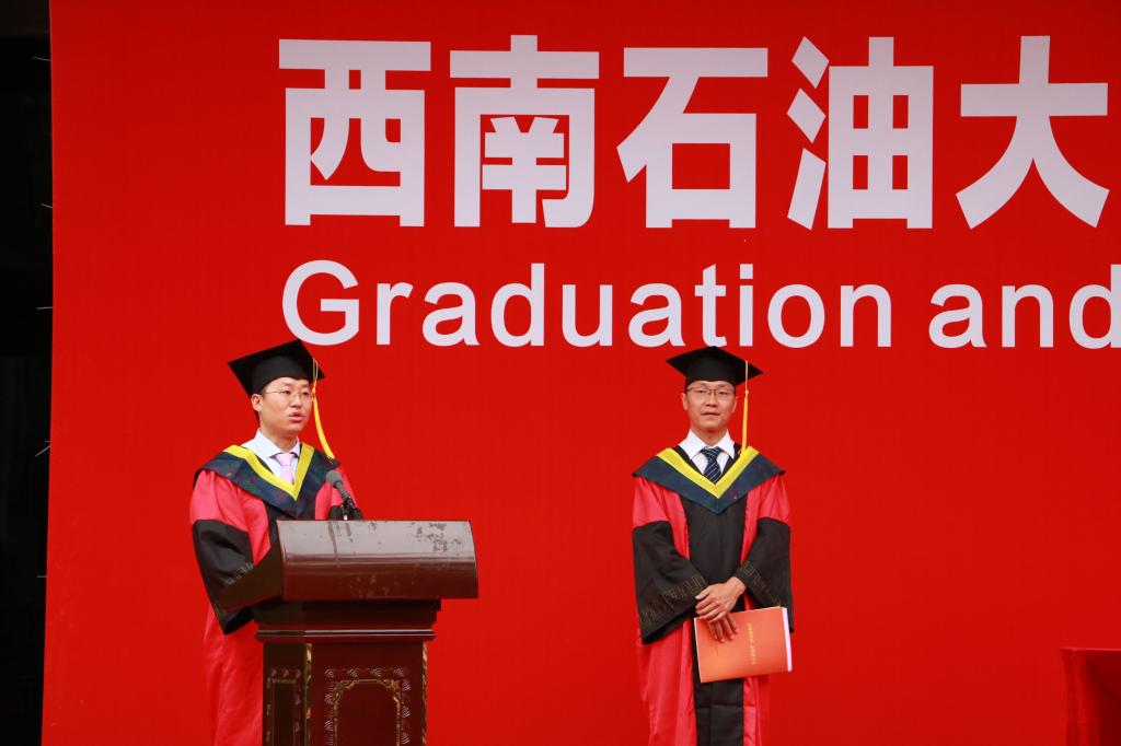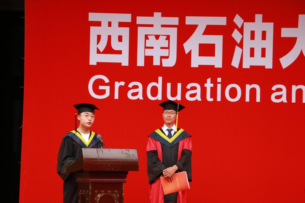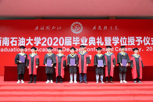 典礼上,各学院院长分别代表学院向全体毕业生致辞,各学院副院长分别宣读了本学院2020届优秀毕业生名单,学院领导分别为荣获“四川省优秀大学生”和“西南石油大学优秀大学生”荣誉称号的学生颁发了荣誉证书。