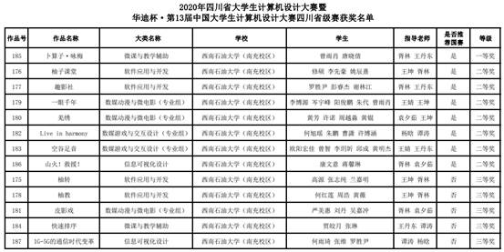 6月10日—14日,2020年四川省大学生计算机设计大赛暨华迪杯·第13届中国大学生计算机设计大赛四川省级赛在成都工业学院举行。南充校区信息学院14支学生代表队参赛,荣获一等奖1项、二等奖7项、三等奖5项。其中荣获一等奖、二等奖的参赛队伍将于今年8月参加国赛。