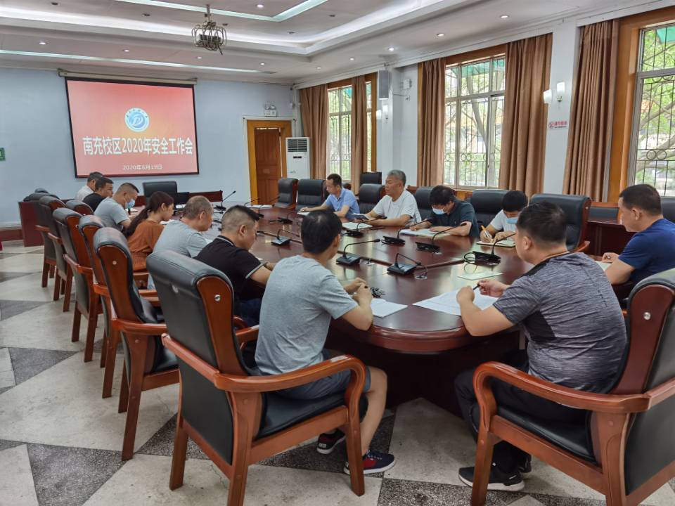6月19日上午,南充校区召开2020年安全工作会。南充校区党委副书记、纪委书记覃鸿飞、南充校区副校长王胜军参加会议。会议由王胜军主持。