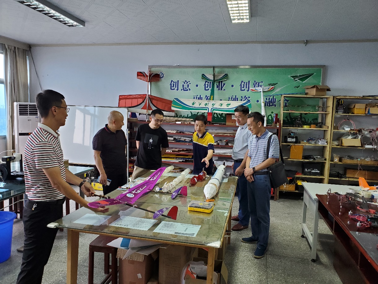 谌贵辉重点介绍了校区航模科普基地的建设规模、组织机构、人才队伍建设、实验设备投入等情况。校区航模与飞行器科普基地负责老师田军介绍了基地整体运营情况。