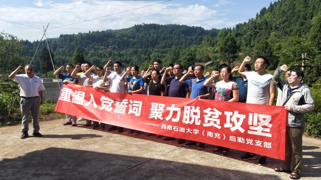 6月30日,在中国共产党成立99周年前夕,在决战脱贫攻坚、决胜同步小康的关键时刻,后勤党支部组织全体党员赴蓬安县鹅项颈村开展“重温入党誓词,聚力脱贫攻坚”主题党日活动。南充校区副校长谌海云与后勤党支部全体党员参加活动。