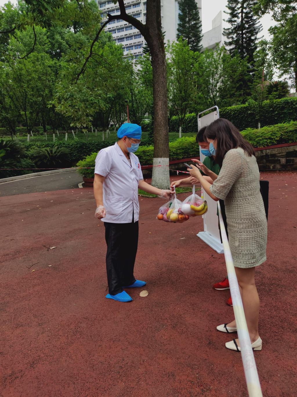 学院辅导员老师为孙浩、黄健送去新鲜水果