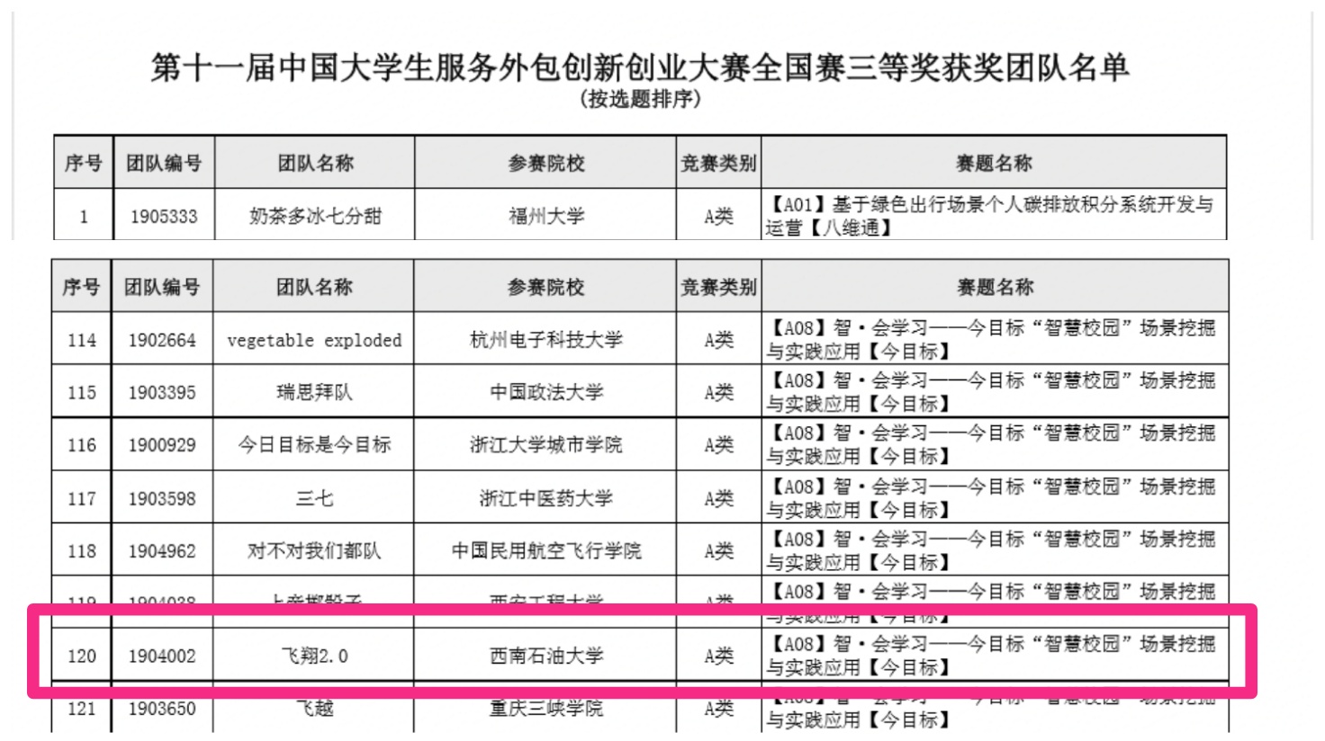 7月12日,第十一届中国大学生服务外包创新创业大赛暨第二届西部区域赛顺利结束。信息学院2018级学生林龙、兰婷婷、秦茂婷、李亚文组成“飞翔2.0”团队参赛,荣获西部区域赛二等奖、全国决赛三等奖。信息学院胥林、王坤担任指导老师。