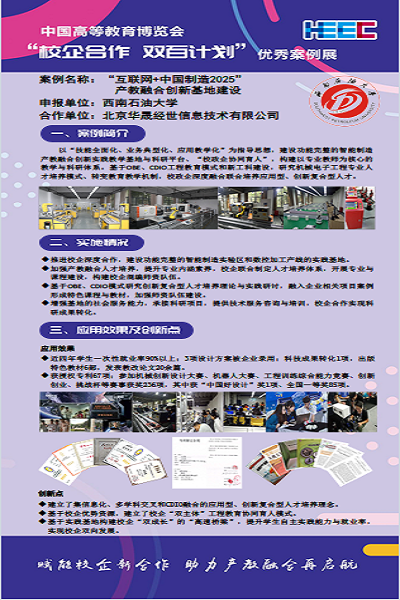 10月21日,中国高等教育学会公布了2020年度中国高等教育博览会“校企合作双百计划”路演案例名单,南充校区工程学院“互联网+中国制造2025产教融合创新基地建设”入选,将于11月8—10日参加第55届中国高等教育博览会(2020)路演展示。