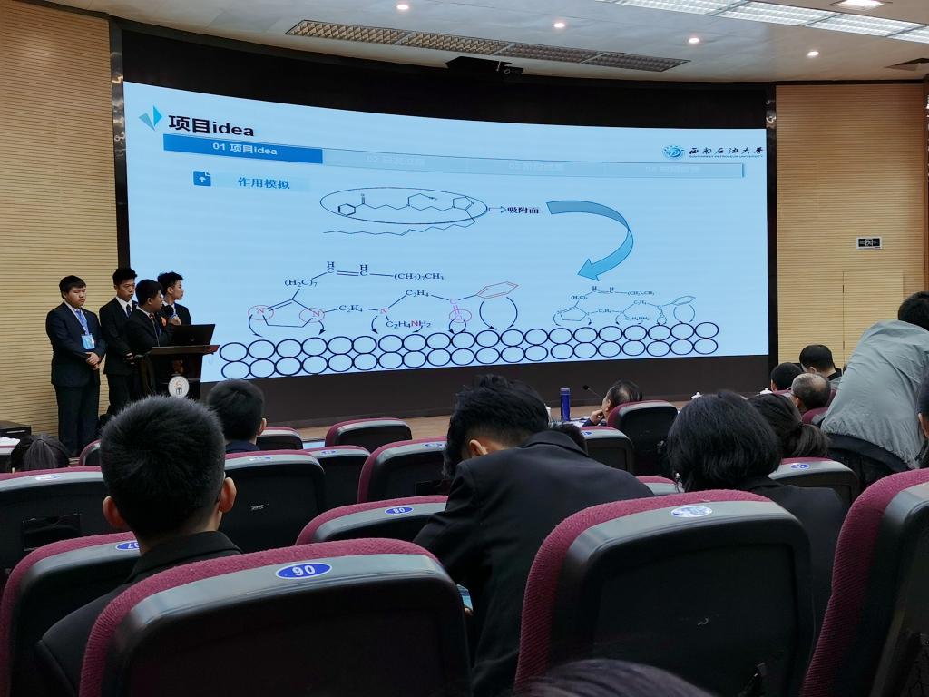今年6月,第三届四川省大学生材料设计大赛正式启动,经过近5个月的初赛选拔,来自四川大学、西南石油大学、西南科技大学、四川师范大学、西华大学等15所高校的33支代表队成功晋级决赛,我校共有2支学生代表队晋级决赛,其中一支队伍为工程学院学生代表队。在决赛环节,工程学院学生代表队围绕项目idea、材料概括、实施计划与预期目标、应用前景与可行性四方面进行展示与答辩,重点介绍了基于多点位吸附绿色高效缓蚀剂材料。该团队的参赛设计作品,综合多重缓蚀剂特点并考虑环境及成本问题,通过优化提升已有缓蚀剂,具有环境友好、成本优势、高效稳定、兼容性好的特点,符合当代绿色发展观念,获得了现场评委的一致好评。