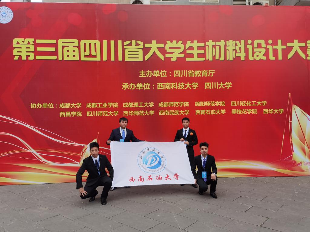 11月14日,由四川省教育厅主办,四川大学、西南科技大学承办的第三届四川省大学生材料设计大赛决赛顺利结束。工程学院材料化学专业2018级王新评、傅伟强、鲁兴宇、杨泽宇四位同学组队参赛,以全省第四名的成绩荣获四川省材料设计大赛二等奖。该团队由工程学院冷曼希、杜建钢两位老师指导。