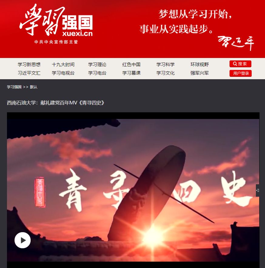 该视频由南充校区团委原创,郝江岭、随明明和“柚寻四史”实践队共同录制。截止目前,访问量已突破一百二十万,点赞数高达一万六千余次。被南充官微“南充见”“直播南充”和中国大学生网、新浪新闻等媒体转载报道。(周煊涵 校区团委/赵洁雅 赵晨皓)