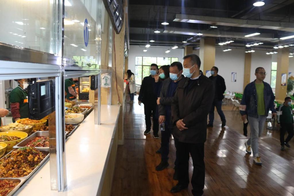 4月1日上午,四川省教育厅后产中心专家组组长严庄一行莅临校区检查指导校园食品安全风险防控和“节约粮食 拒绝浪费”主题教育开展情况。后勤服务公司副总经理文华,校园管理服务中心主任、省教育厅后产中心伙食专业委员会专家张耘,餐饮服务中心主任王永革参加检查。
