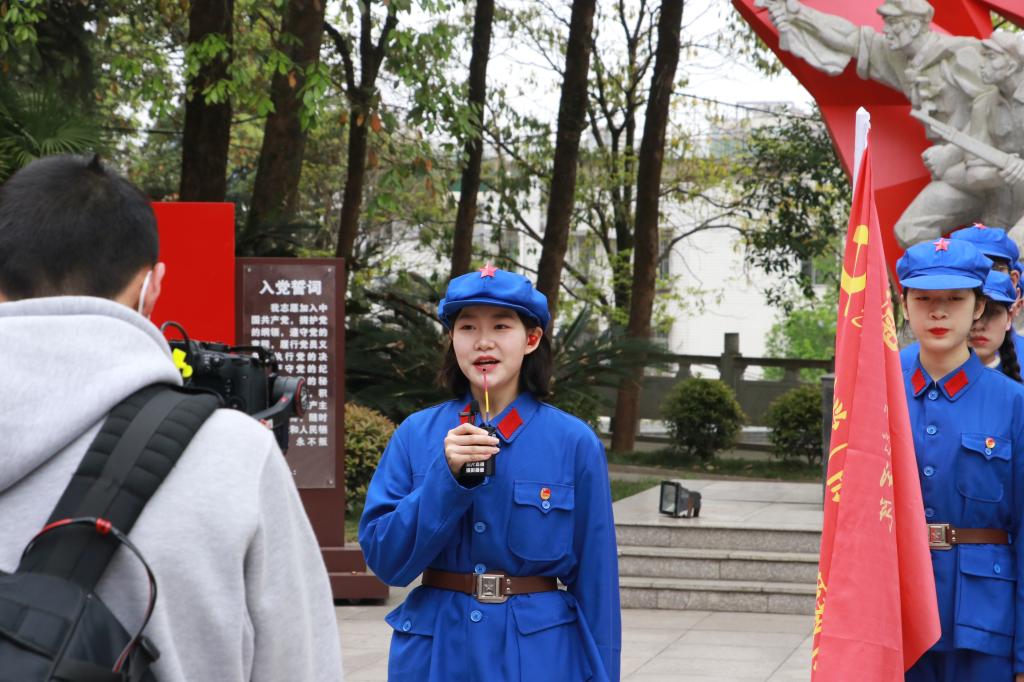校区“红柚”青年宣讲团成员重温入团誓词场景