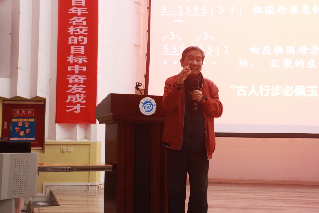 四川师范大学教授、享受国务院政府特殊津贴专家、中共四川省委讲师团主讲教授韩万斋应邀担任主讲嘉宾。韩万斋教授图文并茂地介绍了田汉、聂耳等创作《义勇军进行曲》的创作背景、创作历程以及中国共产党团结带领全国各族人民独立自主、自力更生建设发展新中国的历程。他说,信仰是人生的引路灯,精神文明是民族存在、发展的根本,爱国主义是国民的精神支柱,三者相结合是治国安邦的重要手段。每个主权国家都会采取各种办法让国家的概念深入人心,比如国歌、国旗、国徽、国花、国树、国兽等。但最能表达国家的伟大含义和深刻内涵的是国歌,因为国歌通常达意明晰,雅俗共赏。中华人民共和国国歌是世界最优秀的国歌之一,它鲜明地展示了国家形态,展示了国民意志,能够激起国民的爱国之情,增强国民凝聚力,能起着战鼓和号角的作用,是伟大中华民族的心底之声,是亿万华夏儿女的音乐图腾。他勉励同学们要时刻做到居安思危,增强爱国主义热情,积极为实现中华民族伟大复兴的中国梦贡献自己的力量。