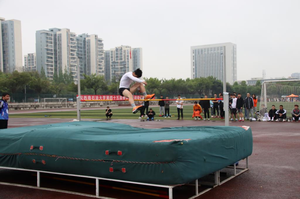 焊接技术与工程专业2019级韩孟霖参加男子跳高比赛场景