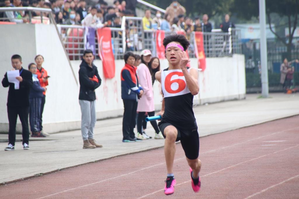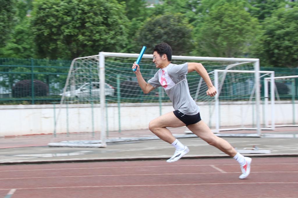 电子信息工程专业2020级秦宇帆参加男子4x100米接力比赛场景