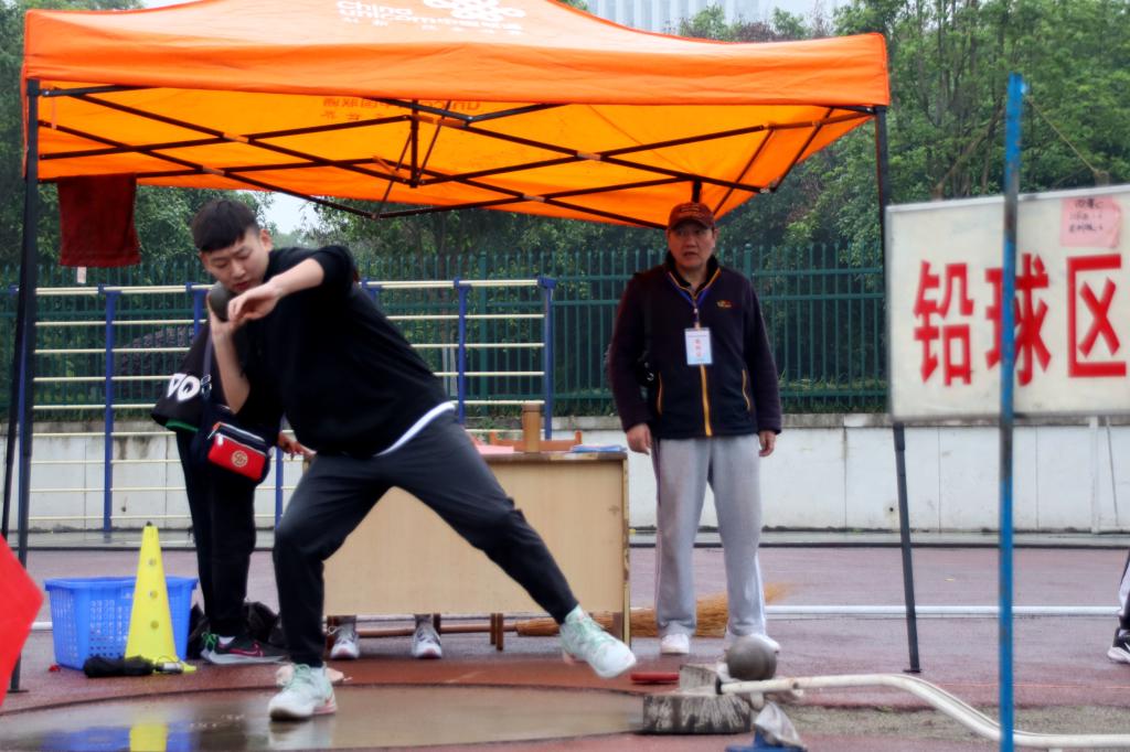 建筑环境与能源应用工程专业2020级龚圣博参加男子铅球比赛场景