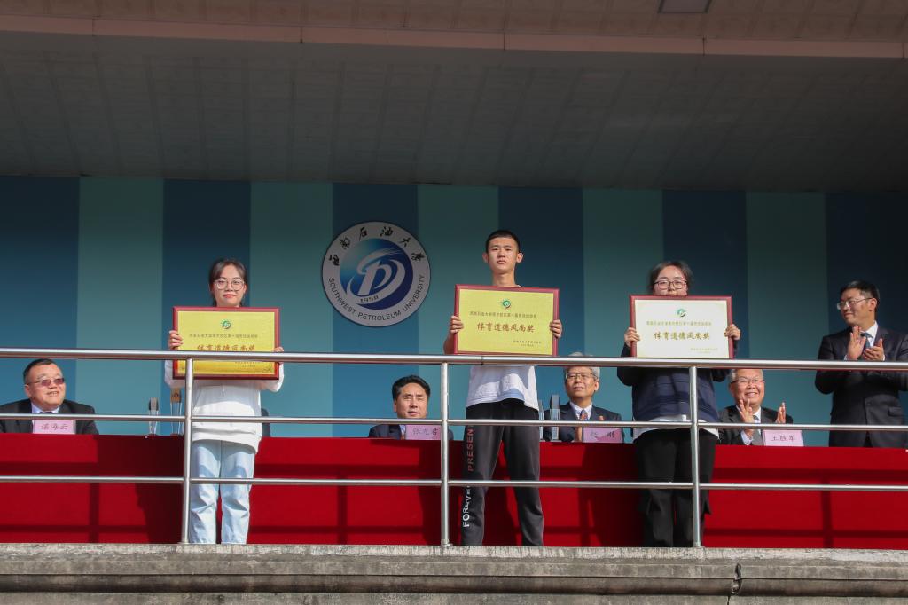 荣获学生体育道德风尚奖专业代表领奖场景