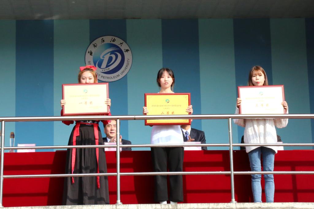主席台就坐的领导分别为获奖团体代表和个人队颁奖并合影留念。(周煊涵 大学生全媒体中心/李易轩 何安娜 刘奕宏 蒋银全)