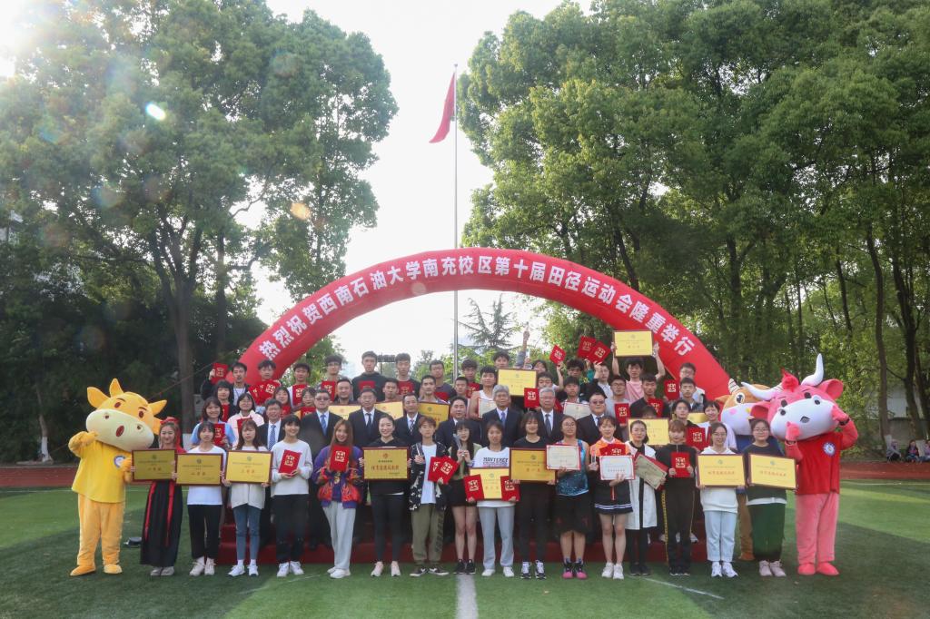 南充校区党委副书记、纪委书记覃鸿飞致闭幕辞。覃鸿飞代表校区党委、行政向辛勤付出的工作人员、裁判员表示衷心的感谢,向奋勇拼搏、取得优异成绩的运动员及团队表示诚挚的祝贺。他说,本届田径运动会比赛项目多、参与度高,共决出奖项54个、获奖运动员246人次,展示了校区体育运动的水平和实力、师生员工“敢于拼搏、勇争一流”的精神面貌。整个赛场秩序井然,安全有序,赛出了水平,赛出了风格。他勉励大家在今后的工作学习中,要继续秉持“敢于拼搏、勇争一流,团结友爱、通力合作”的体育精神,共同开创西南石油大学和南充校区的美好未来。