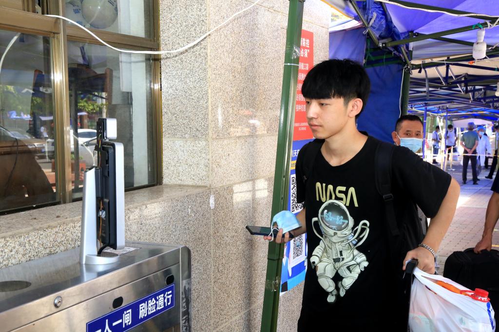 学生工作部(团委)老师再次核验学生校园一卡通、准返校凭证、学生通信行程卡