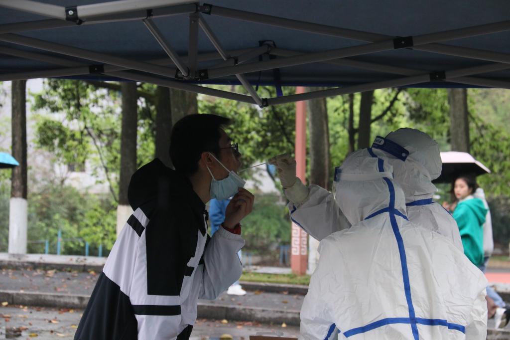 防疫人员组织学生进行核酸检测