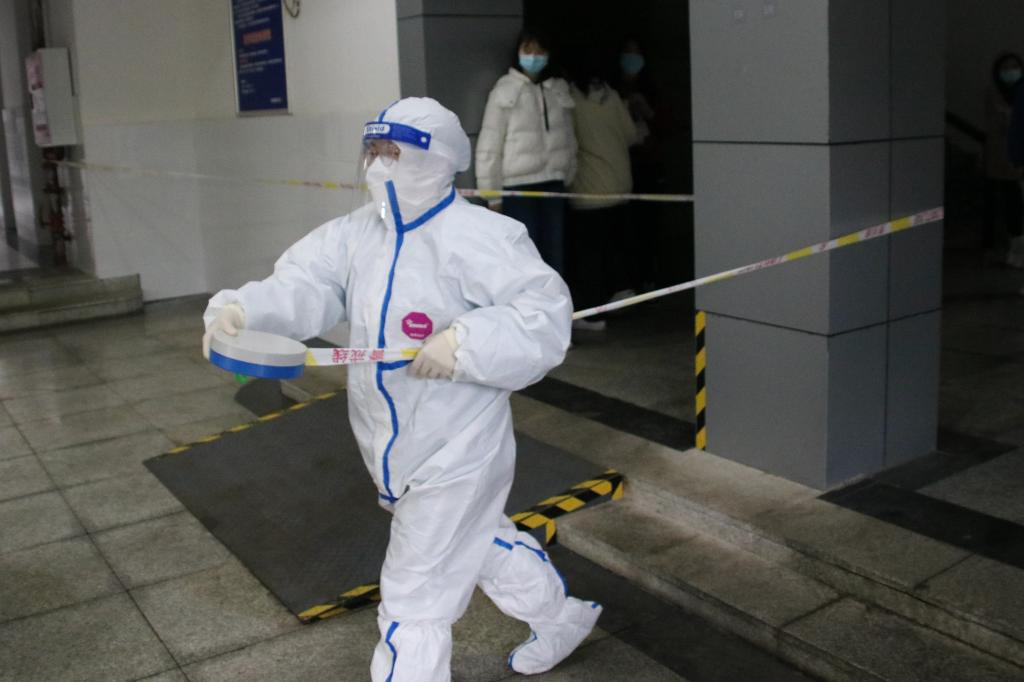 防疫人员组织相关学生有序转移至校园医学观察点
