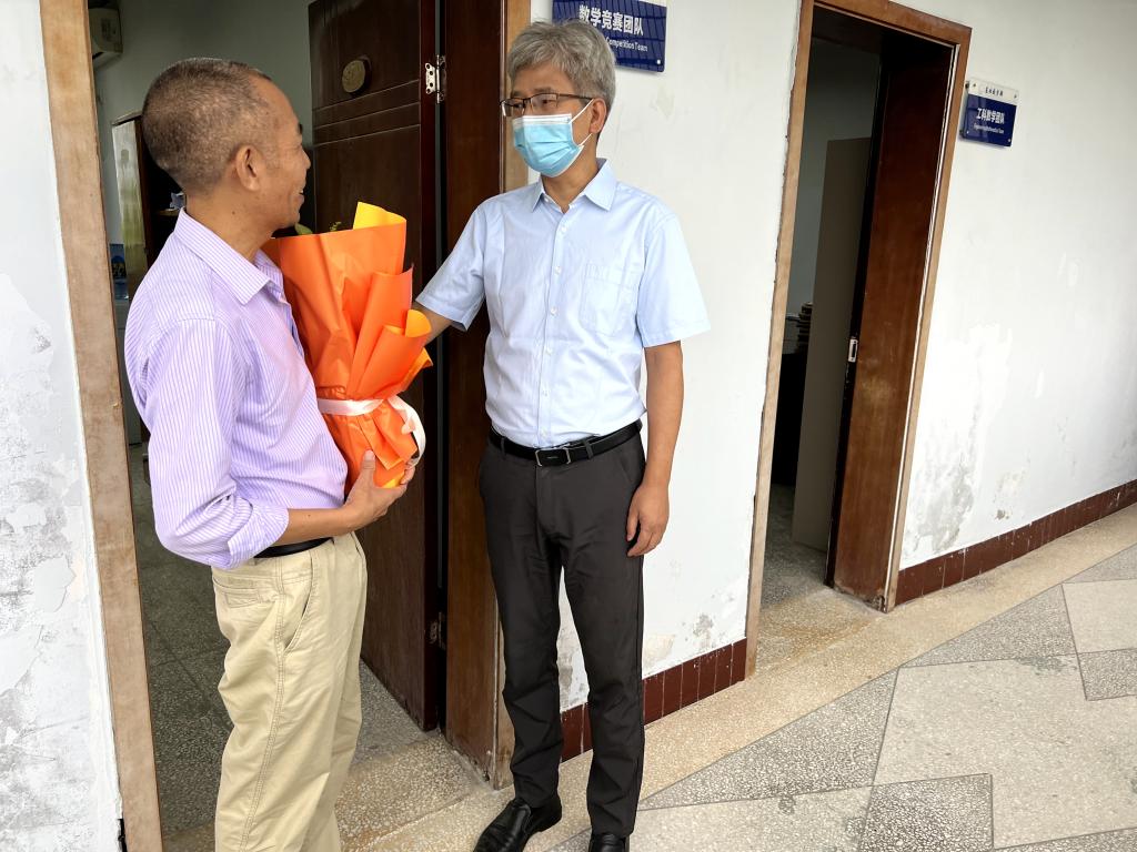 9月9日上午,在全国第38个教师节之际,南充校区领导张光君、赵刚、覃鸿飞看望慰问了上课教师和思政辅导员,向大家赠送了鲜花,代表学校和校区对大家潜心教书育人表示感谢,并送上了节日的问候和祝福。校区党群工作部(工会)、学生工作部(团委)参加此次活动。