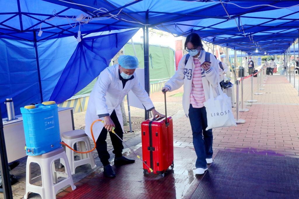 据悉,本批次返校学生为2019级、2020级和2021级学生,共有4500余名。学生返校后将居寝观察,严格落实“三天三检”核酸检测要求,校园实行相对静态管理,返校一周内开展在线教学,一周后按要求落实常态化管控,各学院也将按规定做好学生晨午晚检、居寝学习等教育管理工作。(周煊涵 大学生全媒体中心/胡乔阳 苏珂 黄聂军)