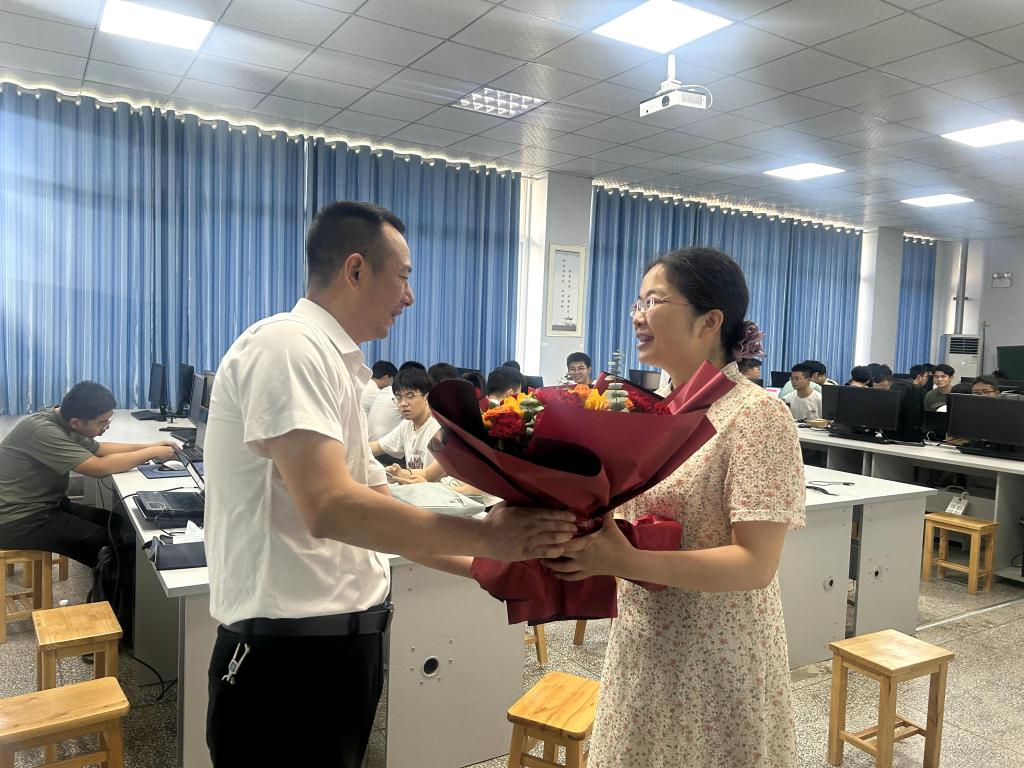 张光君、覃鸿飞、谌贵辉分别走进教室、实验室、老师办公室,向一线教师送上鲜花与节日的问候。教室里,在校区领导的提议下,同学们全体起立,向授课教师齐声表达节日的祝福,祝老师们教师节快乐。