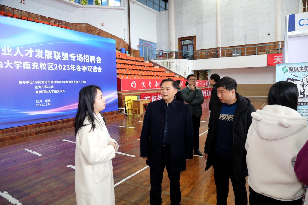 为更好地搭建毕业生就业平台,促进毕业生高质量充分就业,12月8日,南充市产业人才发展联盟专场招聘会暨西南石油大学南充校区2023年冬季双选会在校区体育馆举行。