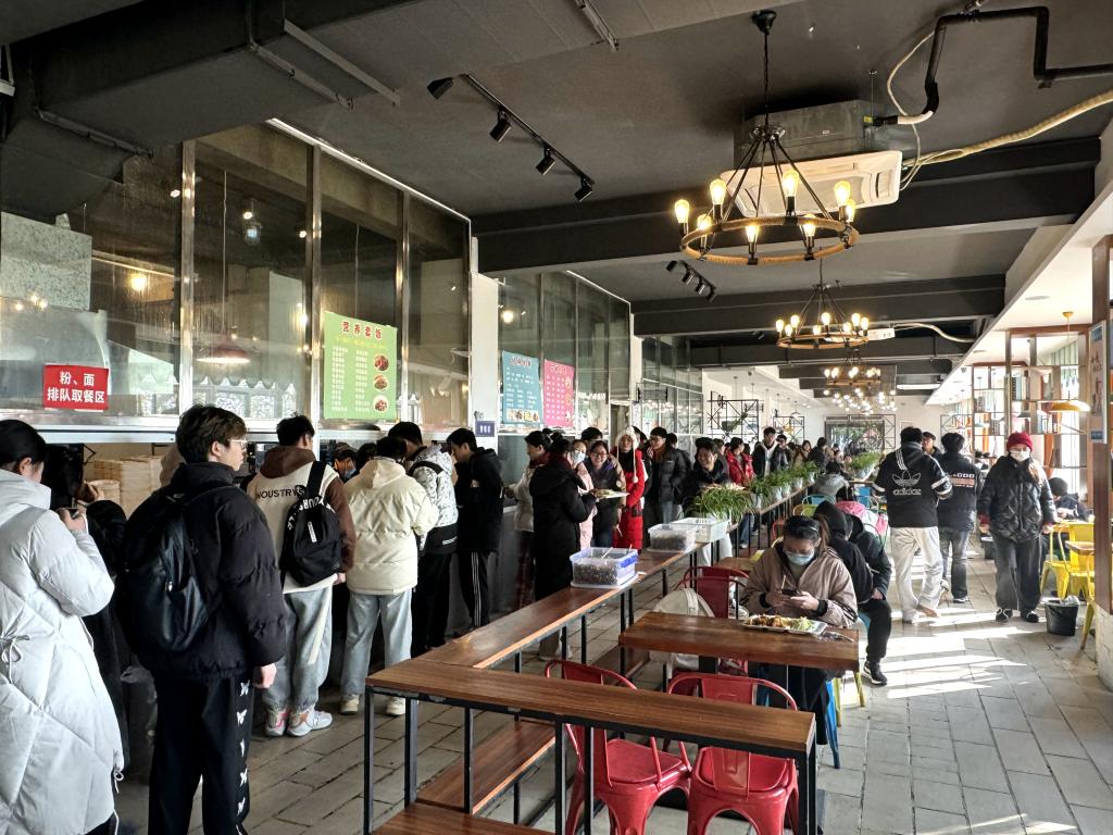 考生在教学餐厅就餐