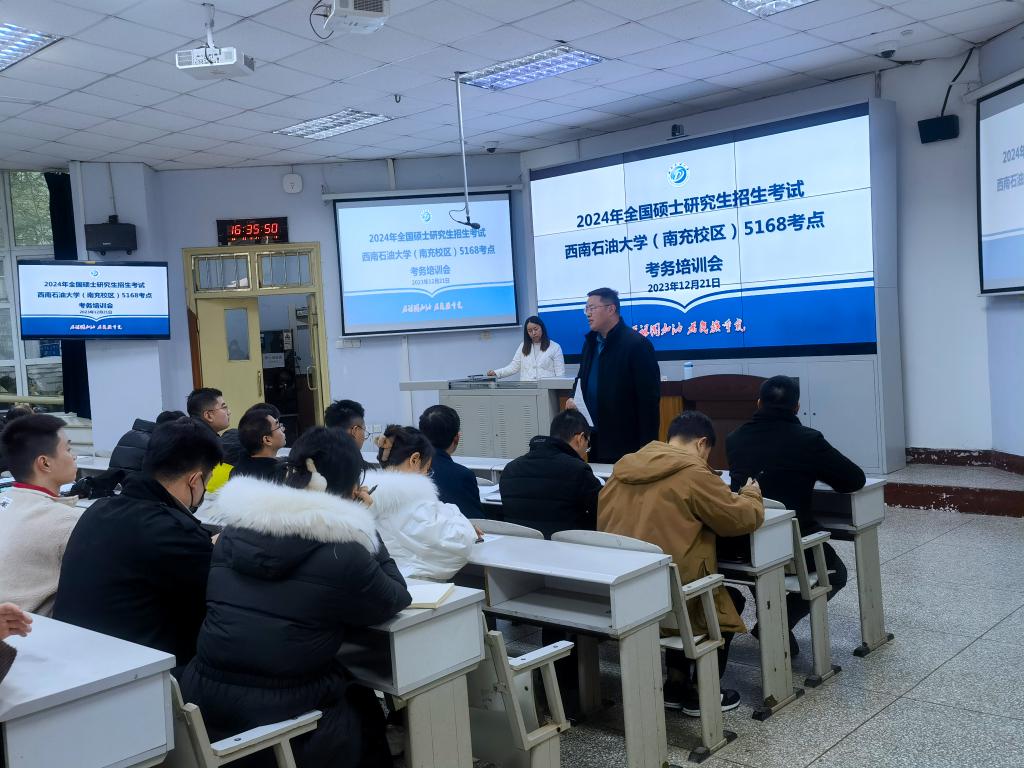 南充校区周密部署,有序推进,成立了以南充校区党委副书记、常务副校长姚远担任组长的研究生招生考试工作领导小组,由教务部牵头,联合校区各职能部门成立纪检监察、安全保密、网络信息等9个工作组,并制定了《西南石油大学南充校区考点2024年硕士研究生招生考试组考方案》等10套工作方案,先后组织召开4次工作推进会,加强对研招考试工作人员进行政策、纪律、规则及程序等方面的教育培训。