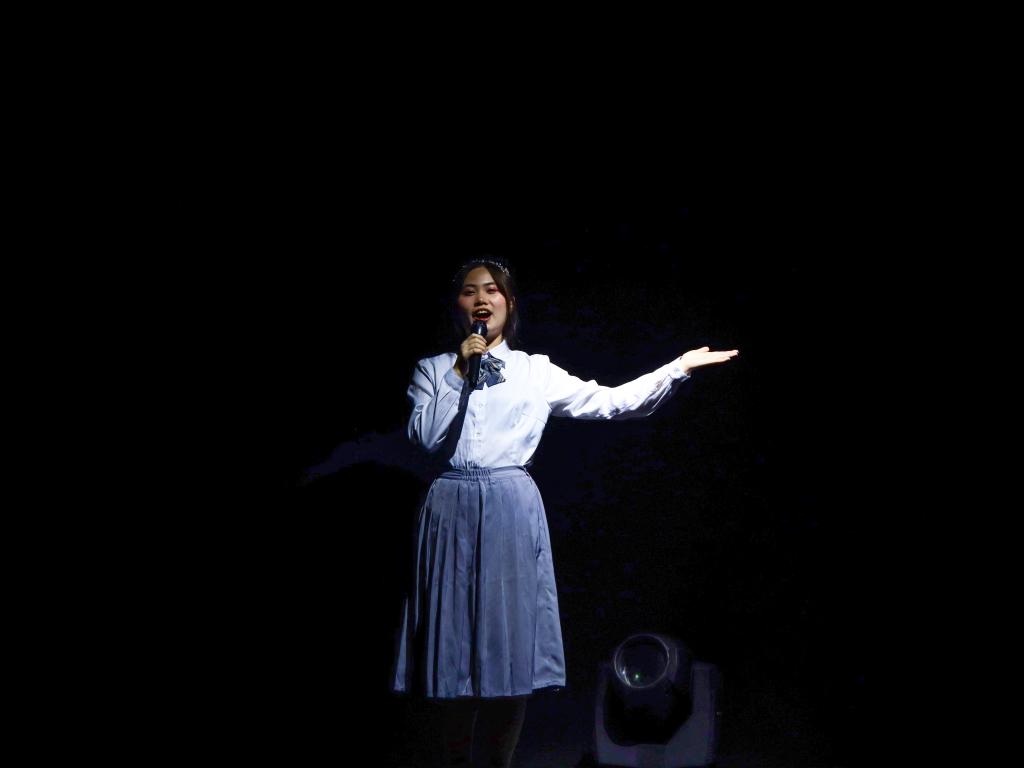 水袖起,衣袂潋滟,如惊鸿展翅高飞。歌舞《一曲东方》将现代流行音乐和传统戏曲相结合,悠扬的乐曲与演员的唱腔相得益彰,把现场气氛推向了新的高潮。表演的同学以其独特的唱腔、精湛的表演技巧和丰富的舞台表现力,让现场观众在川剧的艺术魅力中得到情感的共鸣和心灵的滋养,展现了校区学子学习传承中华优秀传统文化的成效与风采。