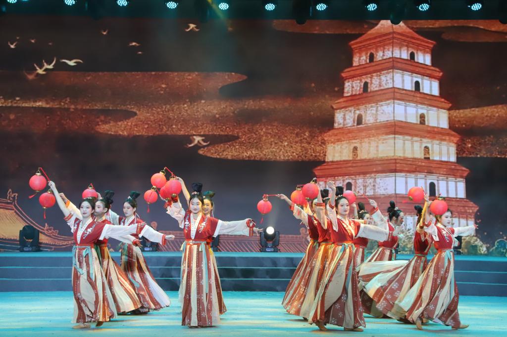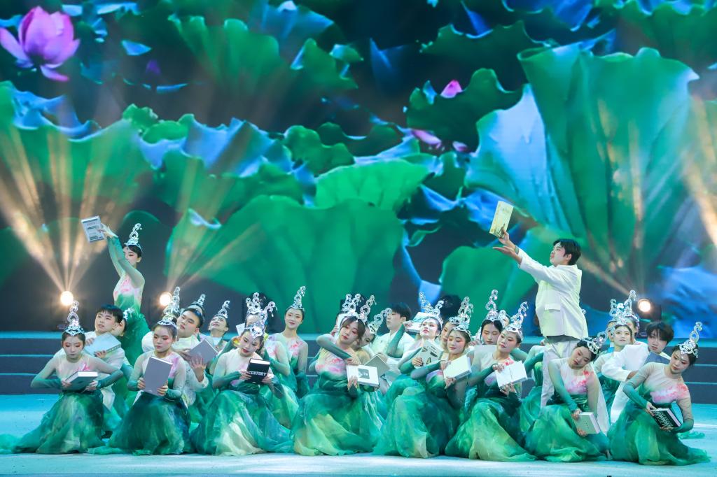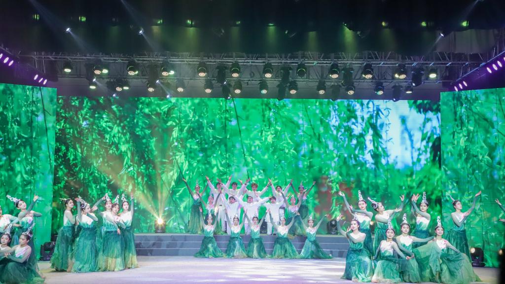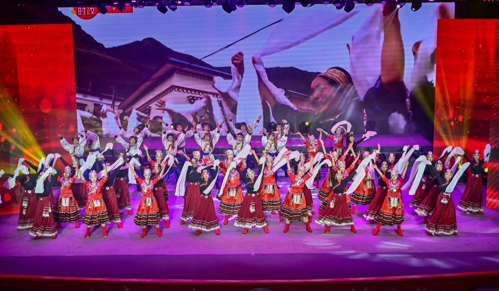 石榴花开相映红,民族团结一家亲。舞蹈《石榴花开》的演员们身着传统民族服装欢快起舞,展现了各民族各美其美、美美与共的画面。歌曲《领航》饱含深情地唱出了党和人民心连心的时代旋律,抒发了全国各族人民在中国共产党的带领下阔步新时代新征程的豪迈之情。