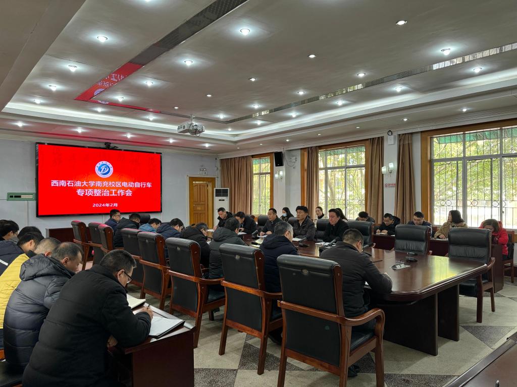 为有效推动校园电动自行车专项治理工作,切实维护师生员工的生命安全和校园安全,2月29日,南充校区举行电动自行车专项整治工作会。南充校区领导姚远、范起东、覃鸿飞、谌贵辉参加会议。会议由南充校区副校长覃鸿飞主持。