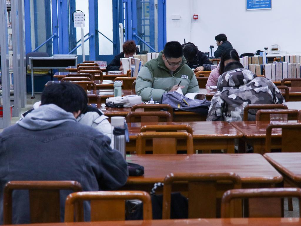 图书馆又响起沙沙的翻书声,同学们笔耕不辍,为即将到来的考试认真准备着。材料化学专业2021级龚鑫福表示,“图书馆学习氛围比较浓厚,能够让我很快进入学习的状态,我计划参加2025年的全国研究生招生考试。虽然还有一年的准备时间,但是时间不等人,寒假结束前一周就已经在调整自己的状态了”。