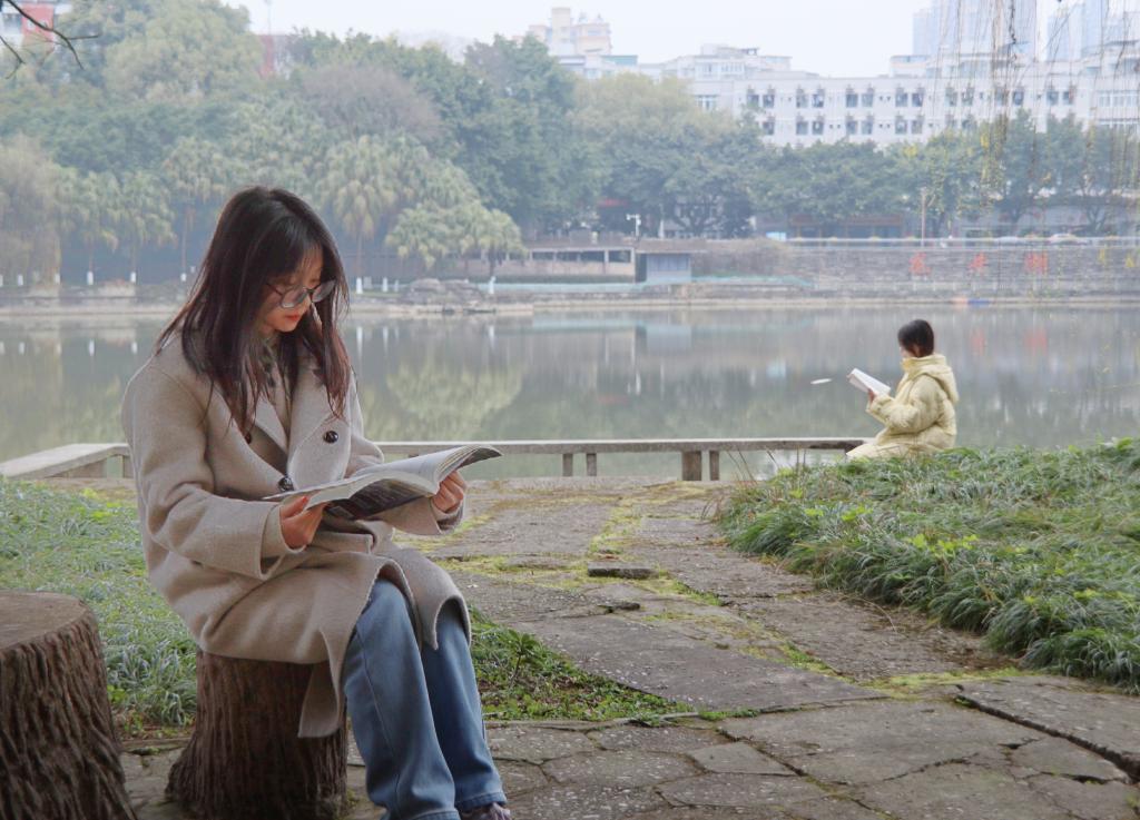 春风不燥,时光正好。一大早,同学们便三三两两相约至龙井湖畔晨读,开启美好的一天。