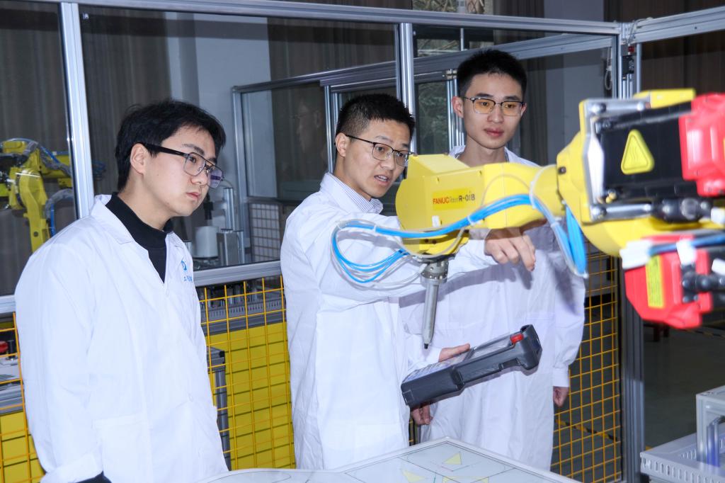 机器人创新实验室里,同学们正在紧锣密鼓地调试设备,虽然是开学第一天,但是他们已经完全进入工作的状态。机械电子工程专业2022级孙俊淇说,“经过团队成员一个寒假的努力,现在作品已经进入调试阶段,对3月份开始的全国大学生机器人大赛充满信心”。