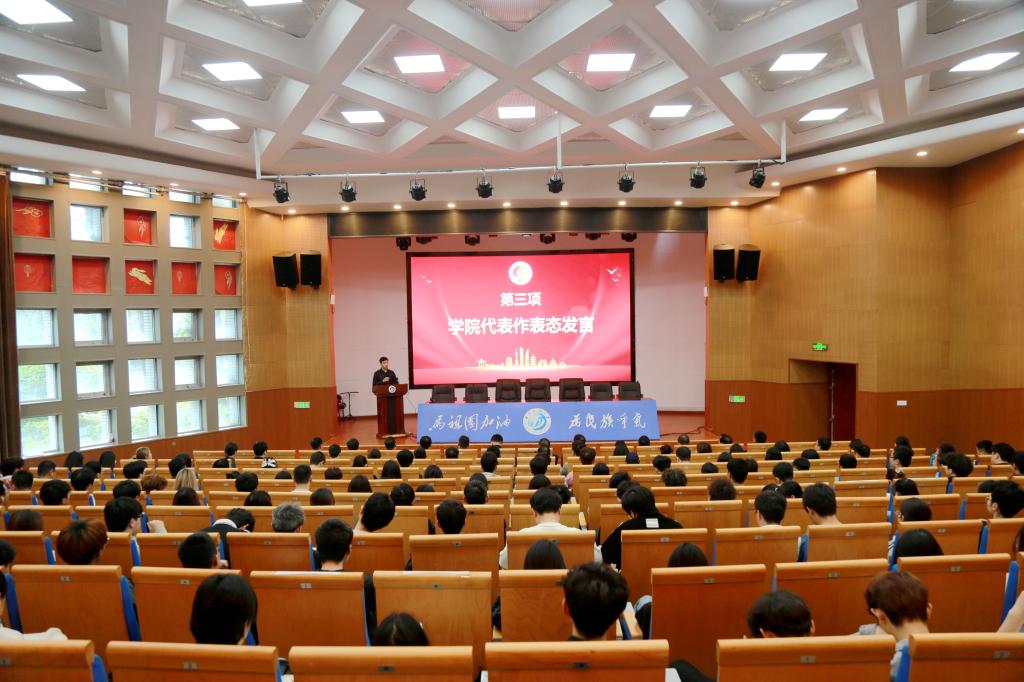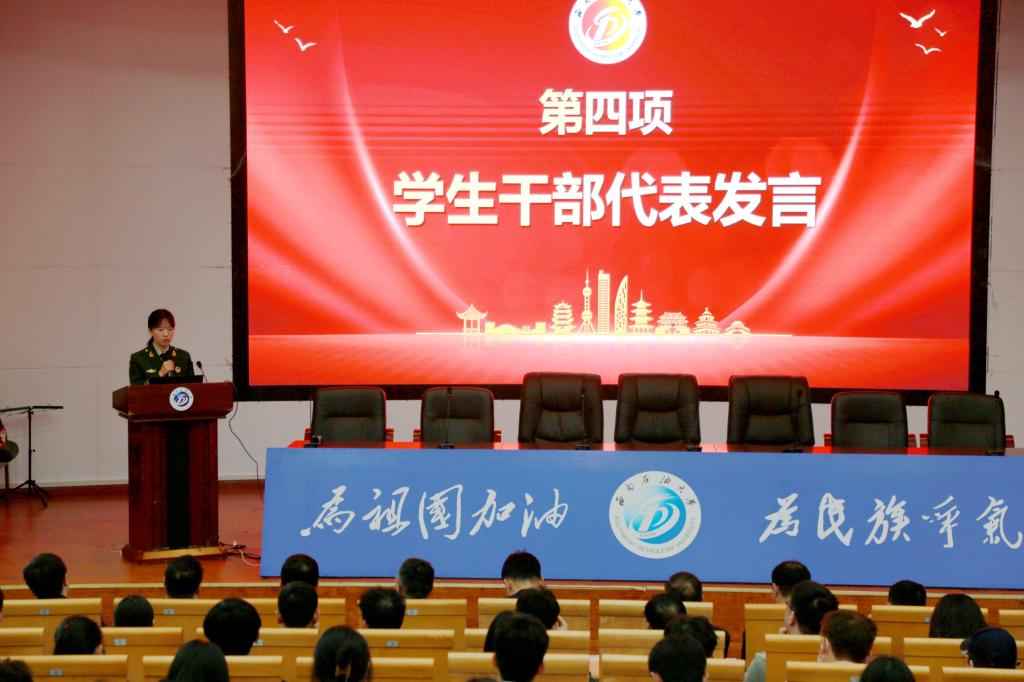 学生发展部(团委)部长郝江岭宣读了《西南石油大学关于寝室建设专项行动的九条措施》,经济管理学院学生工作办公室主任(团总支书记)杨智光代表各延伸学院作表态发言。计算机与软件学院电子与计算机工程专业2022级周熙蕾、机电工程学院机械电子工程专业2021级翟悦男分别代表学生干部、学生党员作了主题发言。