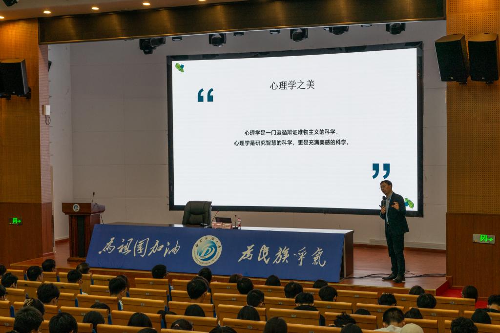 启动仪式结束后,罗家明教授为师生讲授了《美在心理》的讲座。他围绕心理之美、生命之美、人格之美、情绪之美、奋斗之美等方面内容,详细介绍了心理美感的发生发展、生命美感的意义和价值、人格美感的灵动与和谐、情绪美感的深邃与睿智、奋斗美感的昂扬与坚定等心理健康教育知识,让大家多角度、多层次经历了一次心理“美”学体验。罗教授说,美育和心理相结合不仅能满足人的审美需要,让人借助美好的事物愉悦人的心理、陶冶人的情操、净化人的心灵,还能发挥“入心、化人、怡情”的教育功能。希望大家能积极主动地发现美、创造美、传递美,向美而教、向美而学、向美而行。