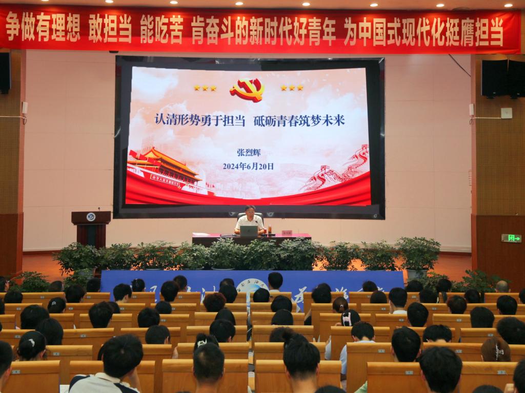 6月20日,校党委书记张烈辉为南充校区2022级学生讲授了主题为《认清形势勇于担当 砥砺青春筑梦未来》的形势与政策课,围绕“准确认识我们面临的新形势新挑战”“面向新百年新征程挺膺担当砺青春”两个方面进行授课。