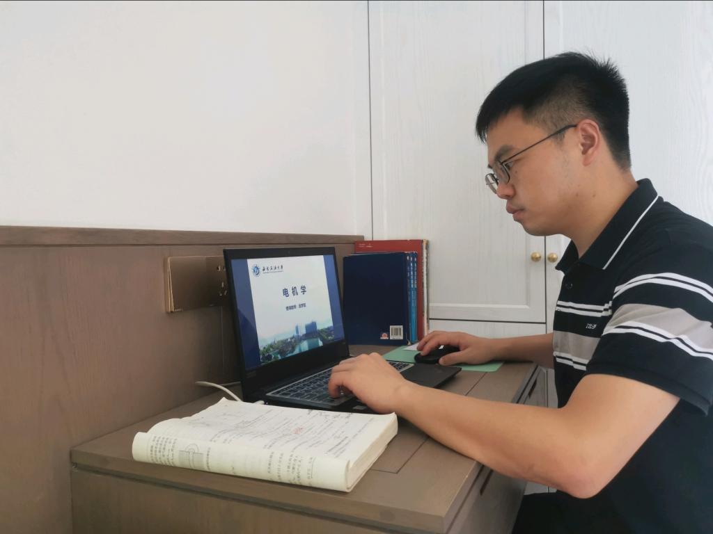 提前了解学生需求、测试技术设备、发送线上学习指南、下课前布置预习任务和随堂作业……电气信息学院汤梦阳老师的在线课堂其实早已开启。为了讲授好《电机学》直播课程,汤老师做好了充分准备,为学生准备相关数字学习资源,不断优化在线课堂教学内容,努力让学生在屏幕那端也能顺利开启新学期的学习,确保教学活动高效开展。