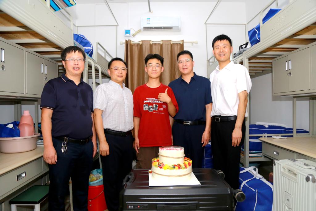 生日“撞上了”入学报到日,两个新的起点合二为一。经济管理学院新生韩扬生日刚好是新生报到入学第一天,校区和学院特地为他送上专门定制的生日贺卡和一份写有名字的专属蛋糕,李德海与学院老师还一起为学生唱了生日歌。李德海说,“这是你在西南石油大学过的第一个生日,也希望是最令你难忘的生日。祝愿你生日快乐的同时,也希望你在今后的学习和生活中弘扬‘为祖国加油 为民族争气’的西南石大精神全力以赴,行而不辍,满载而归。”