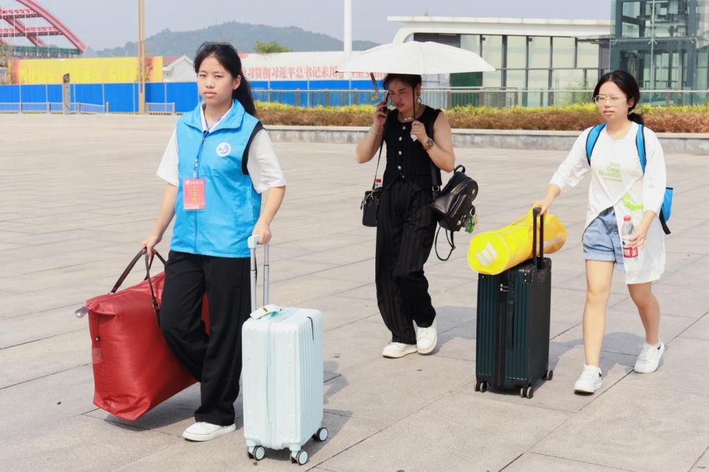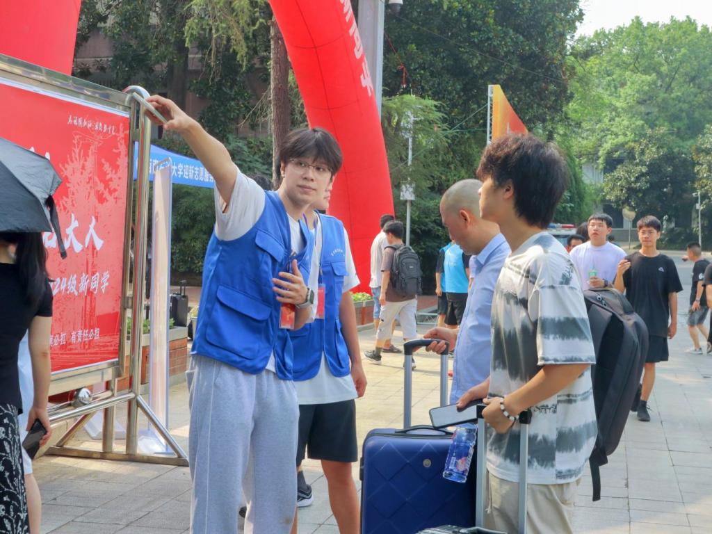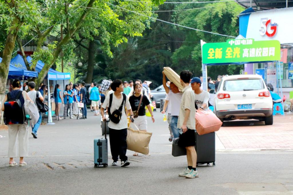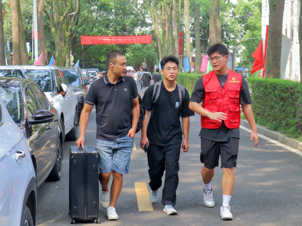 “来校报到前,妈妈还担心我怎么拿行李办手续。但一进校门,我的行李箱、被子等物品就被师兄师姐们接过去了,跟着就顺利办完了入学手续。”来自电信院新生胡晋源表示,学校的服务很暖心,她对未来四年在学校的学习生活充满了期待。