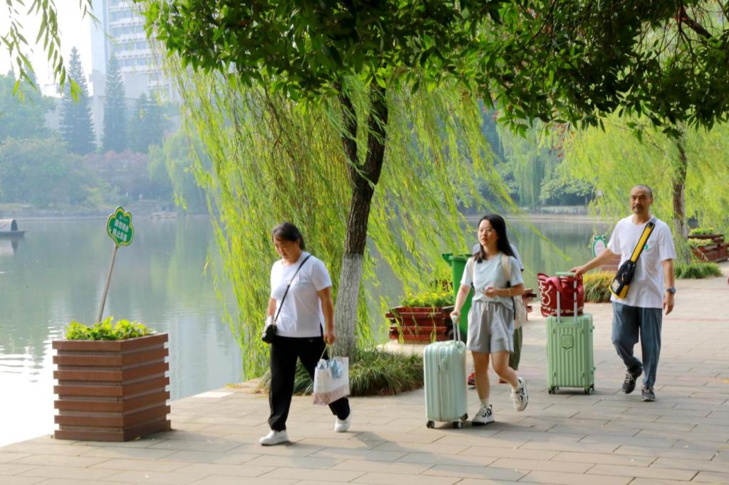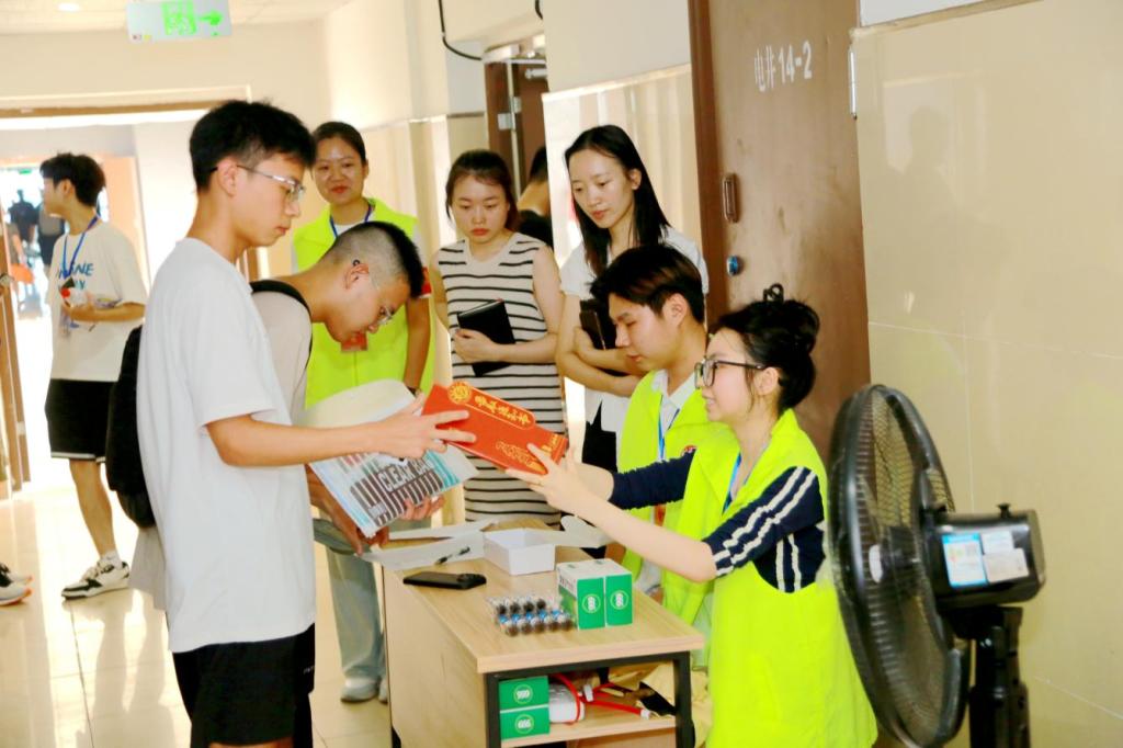 面对持续的高温天气,为避免新生及家长因为高温中暑,校区高度重视,多次召开迎新工作协调会,开辟学生食堂、外语村等场所供新生及家长休息,并免费提供绿豆汤、金银花汤剂等防暑降温物品。进一步优化新生报到流程,组织各学院将新生报到点进寝室,各学院、现教中心工作人员上门服务,让新生足不出寝便能快捷办理报到入学手续。