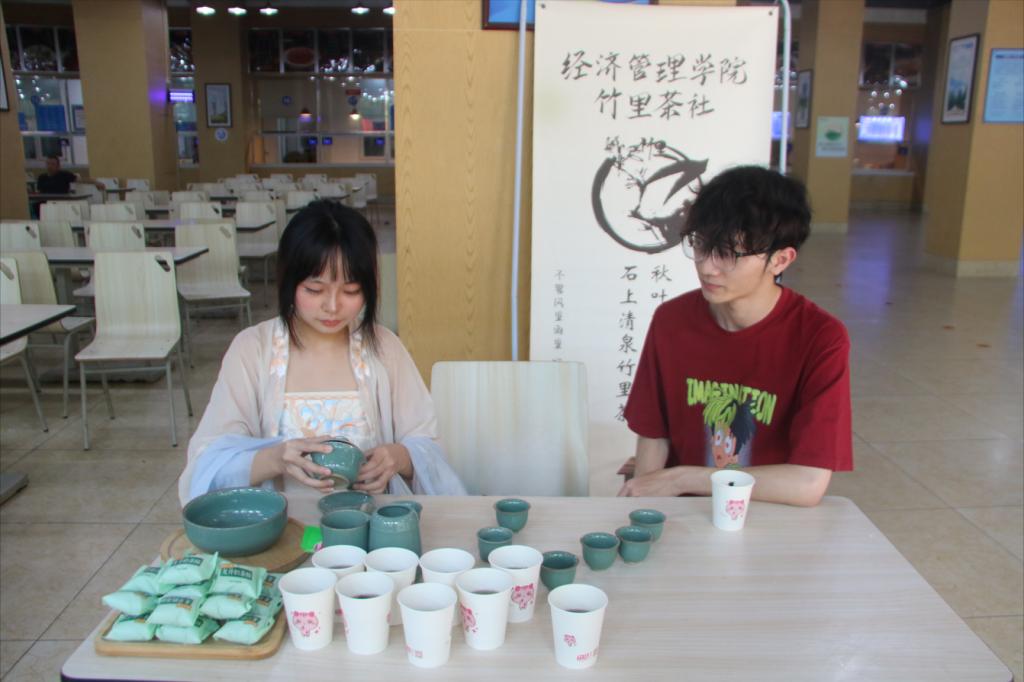 经管院为新生及家长送上了清凉套装:冰雪碧、冰凉茶、藿香正气液、专属钥匙扣等。还在学生食堂组织学生进行了中国传统茶艺表演,为新生和家长提供清凉解暑茶。在计科院新生报到点,新生报到后即可领取一份清凉绿豆沙,在学院会议室纳凉休息。