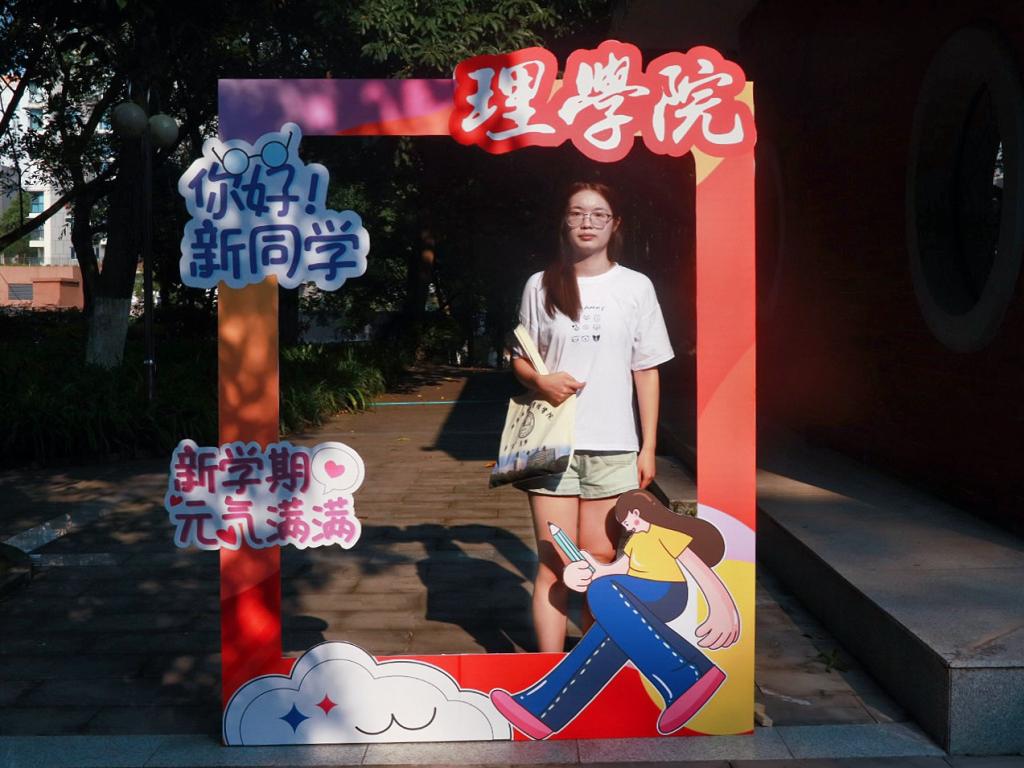 土测院在学院办公楼下布置了特色迎新展板,为新生准备了迎新大礼包,并赠送了高年级学生手写的祝福明信片,新生们不停地翻看明信片,承诺会好好保存这份美好祝愿。理学院在外语村迎新点,布置了新生签名墙,邀请每位新生签名,与家长合影,定格大学入学第一天的美好瞬间。