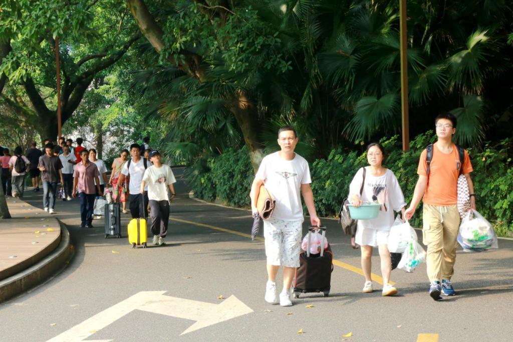 宿舍楼外,新生家长们在临时休息区休息纳凉,新生们满怀激情前往寝室。“我们昨天就到南充了,今天陪着女儿过来报到,学校都安排得很好,女儿在这里读书我很放心,虽然舍不得,但是总是要放她自己去飞。”来自计科院新生王舒婷的家长不舍地说。