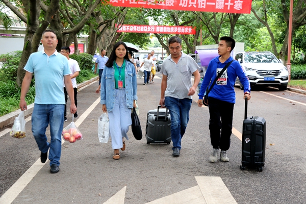 所谓父女母子一场,只不过意味着,你和他的缘分就是今生今世不断地在目送他的背影渐行渐远。你站在小路的这一端,看着他逐渐消失在小路转弯的地方。2018级新生离开家乡来到陌生的城市,他们的每一步无时无刻都被父母牵挂着,新生报到父母随行似乎成了常态。然而今年的入学报到却让家长大有“无用武之地”之感,因为从2016级新生开始,新生报到注册的所有流程只能由新生独立完成。今年各迎新点的“家长休息区”范围都进一步扩大,以满足家长休息所需。