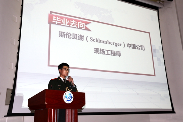 李思远首先分享了自己担任护旗手的经历,国旗护卫队艰苦的训练让他养成了吃苦耐劳和持之以恒的精神。在大学四年里,他凭借过硬的英语基础以及优异的四六级成绩获得去俄罗斯交流访学的机会,并成为了硕博士团队中年龄最小的本科生代表。英语储运,双线提升,即使课程繁难,他仍然做到了两个专业同时保持优秀的成绩。同时他还分享了自己在实习期间如何一步步攻克难关的经历,并告诉同学们,要坚定信心,向目标稳步前进;不畏困难,勇敢去迎接挑战;不怕吃苦,甘于奉献。